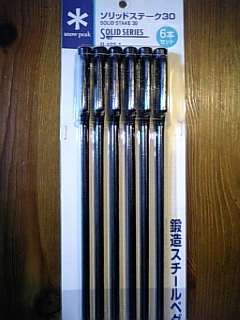 現在テント、タープとも使用しているSNOW PEAKのソリッドステーク。