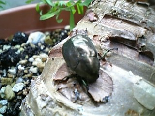 こちらは昼に観葉植物にとまっていたコガネムシ。