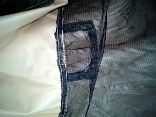 実は以前にポールの引搔けで破れたメッシュ部分2箇所を