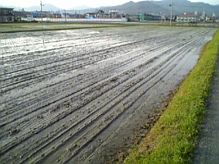 写真は今日田植えを終えたばかりの田んぼです。