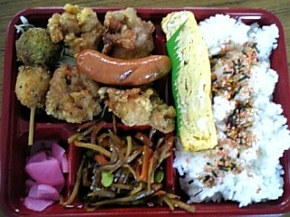 このビル界隈のサラリーマンのために、何種類かの手作り弁当が並べてあります。