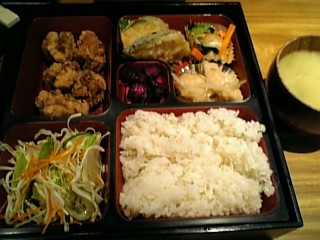 日替り定食。本日は鶏の竜田揚げメインで他にも数品。