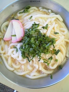 蒜山高原キャンプ場にて、釜玉うどん大盛